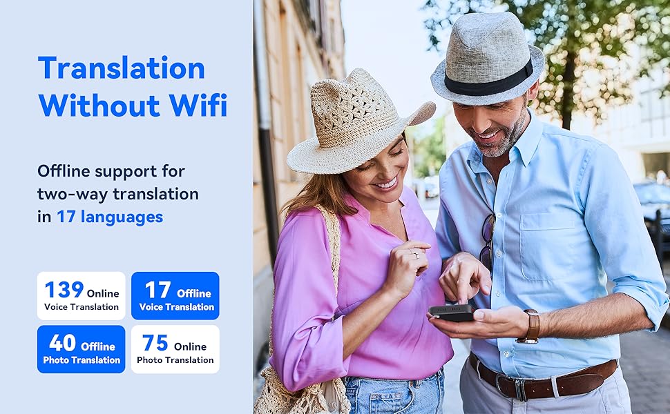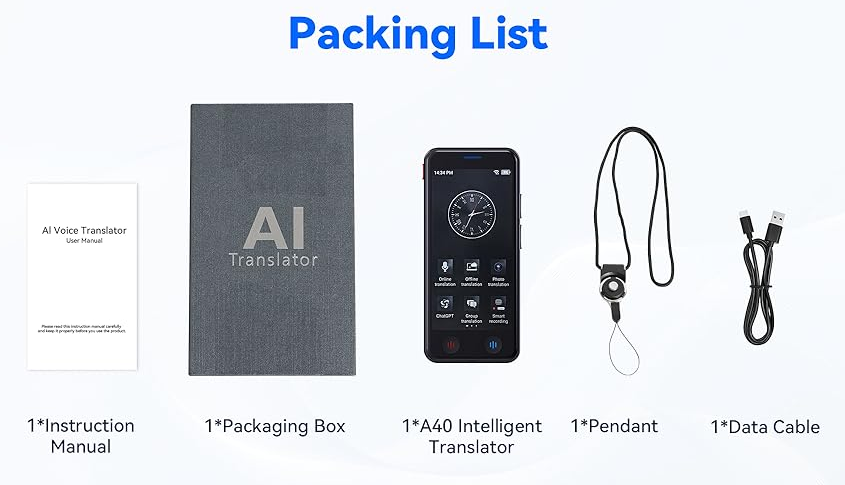 Překlad obrazu a inteligentní nahrávání: Zařízení má 4,1palcový dotykový displej TFT, který poskytuje jasný převod textu na řeč. Má vestavěný 8megapixelový fotoaparát, který podporuje překlad obrazu v 85 jazycích v režimu online a 54 jazycích v režimu offline. Díky tomu je porozumění nabídkám a nápisům snadné a intuitivní. Hlasový tlumočník je vybaven inteligentní redukcí šumu a dokáže zachytit zvuk až do vzdálenosti 2 metrů. Zařízení má provozní dobu více naž 60 minut.