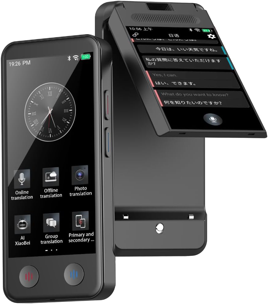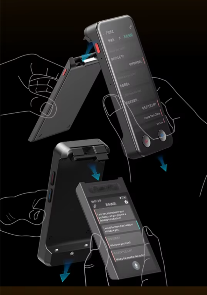 Vy vidíte svůj text, váš protějšek vidí překlad – žádné otáčení, žádné ukazování na displej. Odnímatelný design s dvojitým displejem – jedno zařízení, dva uživatelé 2025 První odnímatelný překladatel s dvojitým displejem a obousměrným překladem v reálném čase na světě: hlavní zařízení (5“) a vedlejší zařízení (3,1“) umožňují současnému použití dvěma osobami. Překladatelské zařízení s dvojitým displejem umožňuje sdílení překládaného obsahu, takže není nutné zařízení předávat z ruky do ruky. Dosah překladu až 1,5 m s automatickým přehráváním hlasu na překladatelském zařízení.