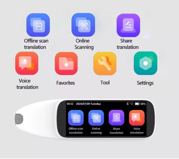 Vícejazyčné skenovací překladatelské pero, obousměrný okamžitý hlasový překlad, výpis textu pro ukládání poznámek, nahrávání hlasových poznámek atd. Ať už jste student, student jazyků, obchodník, turista, cestovatel nebo kdokoli, kdo chce číst knihy a noviny v cizím jazyce, toto zařízení vám pomůže!